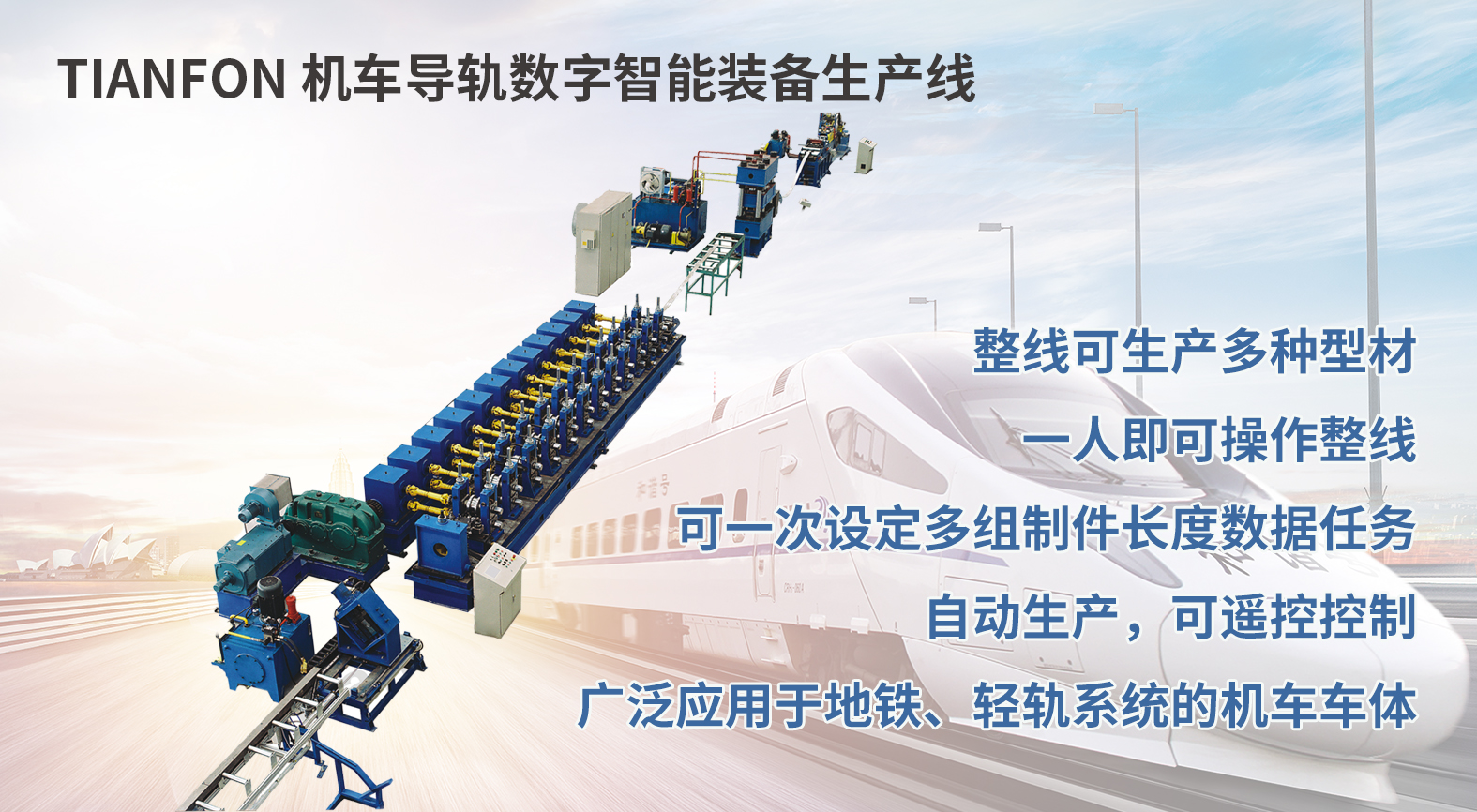 天丰智装专注全球冷弯技术20余载,一直致力全球智能冷弯技术、成套工业控制技术的转化与实现,拥有规模化冷弯装备研发制造基地,是国家高新技术企业、河南省企业技术中心、河南省冷弯成型装备工程技术研究中心,为各行业的智能制造提供柔性冷弯成型装备解决方案,研发了100多种天丰系列智能冷弯装备,涵盖汽车、高铁、环保、钢结构、物流、交通、电器、光伏新能源、现代温室农业和畜牧业等多个行业和领域,智能装备产品享誉全球90多个国家和地区。